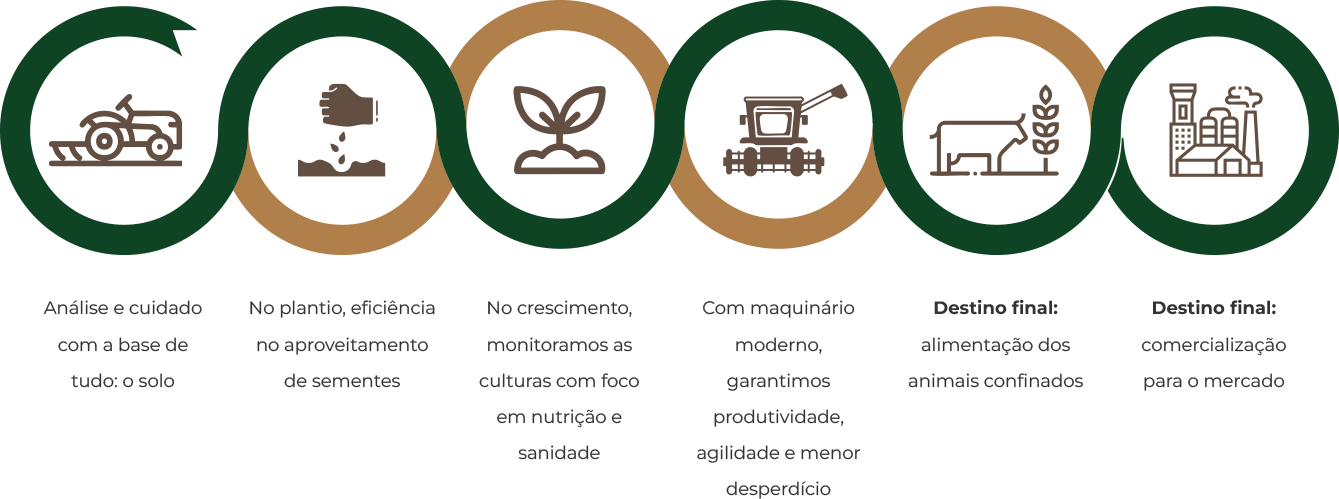 Trabalhamos com manejo consciente, tecnologia no plantio e colheita, e foco na sustentabilidade. A integração entre lavoura e pecuária nos permite aproveitar recursos com inteligência e minimizar desperdícios. Acreditamos que a terra retribui quando é bem cuidada e é por isso que tratamos cada safra com o respeito que ela merece.